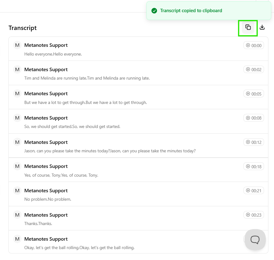 For more detailed instructions on accessing and downloading your transcript, please refer to our article on Accessing and Downloading Transcripts on Metanotes.
